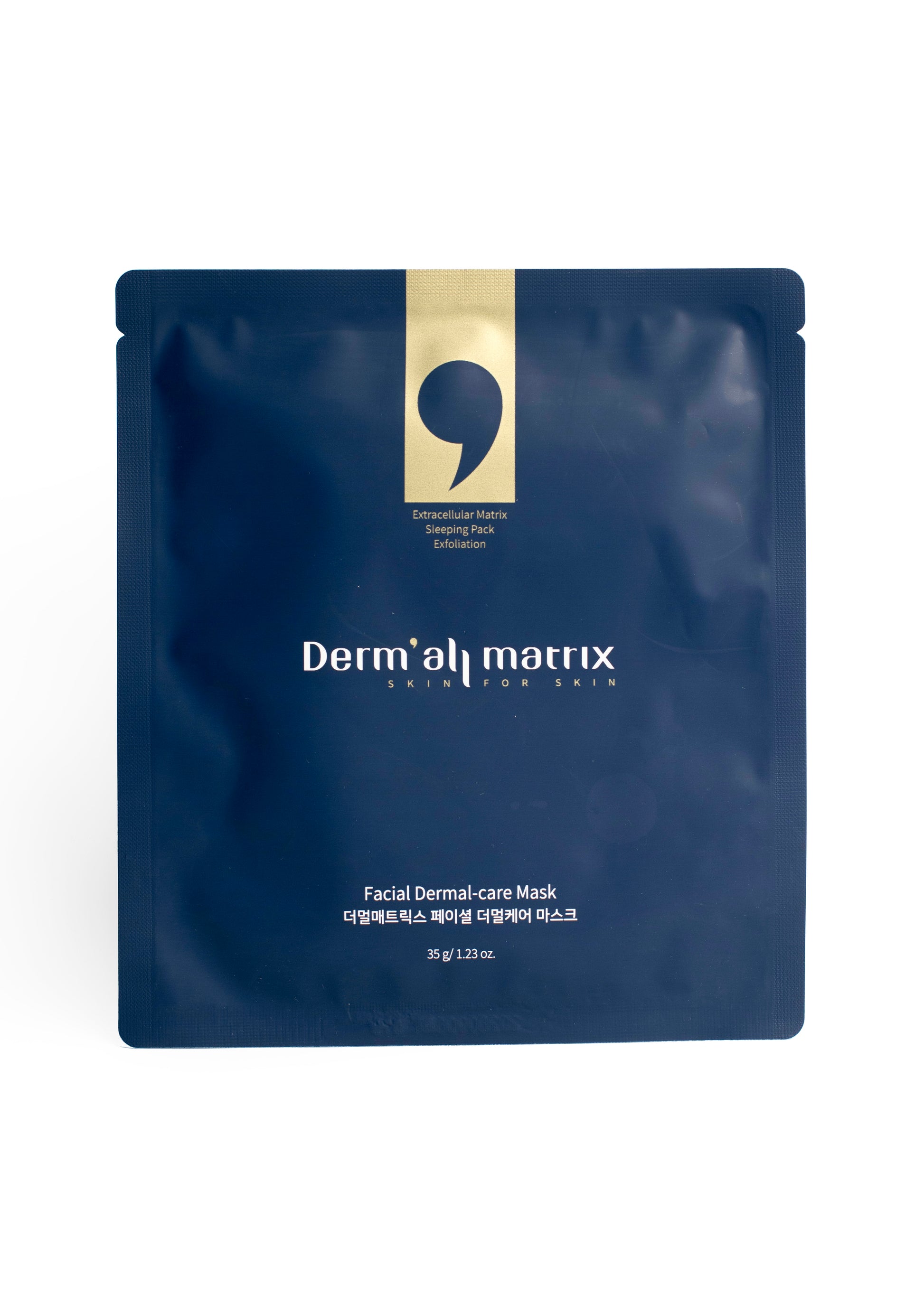 Esta NO ES UNA MASCARILLA DE HIDROGEL! Esta mascarilla esta creada a base de ECM (Matriz Extracelular), una tecnología patentada e inspirada en materiales de piel artificial para el tratamiento de quemaduras, desarrollada por expertos en biomateriales para trasplantes. Es un material exclusivo de los laboratorios de Derm'all Matrix.